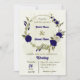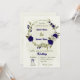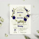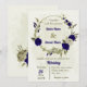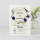 Royal blue beige flowers botanical wedding invitation