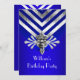 Royal Blue Birthday Party Silver Stripe Invitation