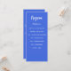 Program and menu card. Personalize and add your name, date and the menu. Royal blue background, white text.
