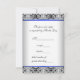 Elegant silver white lace with royal navy blue diamond wedding RSVP. This beautiful black and royal blue RSVP can be used as a menu card, program, directions, etc., due to the convenient 3 1/2 x 5 inch size. Add your details to the front and/or back by simply choosing the "Customize it!" button to begin adding your event details, font style, font size & color, and wording. Please note - all of the invitation designs you will find on Zazzle are printed graphics on flat paper stock with no actual jewels, bows, raised, embossed, or added parts or pieces.