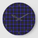 Royal Blue Black Plaid Large Clock