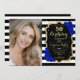 Royal Blue Black White Stripes Photo 50th Birthday Invitation