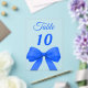 Personalize and your table numbers one by one. A clear background decorated with a large royal blue colored bow.