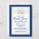 Plain white envelopes are included with paper invitations and will come to fit the invitation size you select. If you don’t need the envelopes, you may choose to not receive them by selecting the dropdown below "Envelopes" and choosing "None." If you’d like to have a design on your envelopes, you can browse all of these available envelopes to find the design that complements your Royal Blue Bridal Shower Invitations.