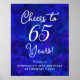 Royal Blue Cheers to 65 Years Birthday Retirement Poster