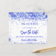 A chic white background decorated with royal blue confetti. Personalize and add a date and name/age. The text: Save the Date is written with a large trendy hand lettered style script. Royal blue text.
