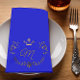 Elegant royal blue colored cloth napkin with graphics of a gold tone flourish and crown text area and custom monogram. Personalize the letter, to this lovely addition to your dining table.