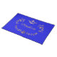 Elegant royal blue colored cloth place mat with graphics of a gold tone flourish and crown text area and custom text. Personalize the text to this lovely addition to your dining table.