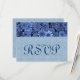 This design with its royal blue daisies peeking out from behind a baby blue damask background makes an elegant RSVP response card You can experiment with different paper types to get just the look you want.