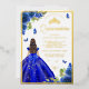 Royal Blue Floral Dress Butterfly Quinceanera Gold Foil Invitation