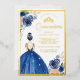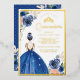 Royal Blue Floral Dress Princess Quinceanera Gold Foil Invitation