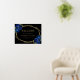 This elegant wedding welcome sign features a gold geometric frame decorated with royal blue flowers. Add the couple's names and wedding date in gold-colored text on a black background.