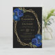 Royal Blue Floral Gold Geometric Black Wedding Invitation