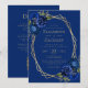 Royal Blue Floral Gold Geometric QR Code Wedding Invitation