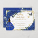 Royal Blue Floral Gold Quinceañera Brown Princess RSVP Card