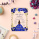 Royal Blue Floral Princess Gold Arch Quinceanera Acrylic Invitations
