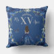 Royal Blue Floral Princess Silver Quinceañera Throw Pillow