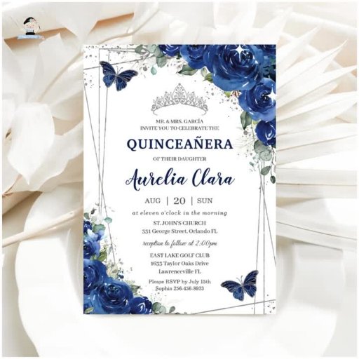 Chic Royal Blue Floral Quinceañera SilverDesigned by The Happy Cat Studio