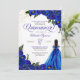 Royal Blue Floral Rose & Gold Elegant Quinceañera Invitation
