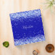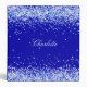 A chic royal blue background, decorated with light blue faux glitter, sparkles. Personalize and add a name written with a modern, elegant hand lettered style script.