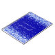 Royal blue background, decorated with faux glitter dust. The title: sketchbook written with a girly modern hand lettered style script with swashes. White colored letters. A notebook for drawings, sketching, notes and school homework.