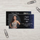 Dazzle and leave a great impression with a custom photo business card. Featuring space for two of your images, front and back, and option to replace the crown logo, this design features a royal blue glitter background and starbursts to highlight your custom text.