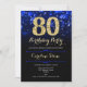 Royal Blue Gold 80th Birthday Invitation