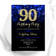 Plain white envelopes are included with paper invitations and will come to fit the invitation size you select. If you don’t need the envelopes, you may choose to not receive them by selecting the dropdown below "Envelopes" and choosing "None." If you’d like to have a design on your envelopes, you can browse all of these available envelopes to find the design that complements your Royal Blue Gold 90th Birthday Invitation.
