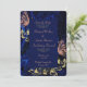 This elegant wedding rounded save the date announcement with beautiful royal blue, shining ornate gold and delicate pink butterflies is an elegant addition to your event.