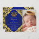 You can edit the design on the back through our Design Tool and selecting "Layers." By customizing the back of your Royal Blue Gold Crown Prince Baptism Invitation, you can have a more complete invitation and present more information to your potential guests, but don’t worry - you don’t have to add a design to the back if you prefer to just have a design in the front.
