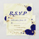 royal blue gold floral marble geometric RSVP card