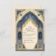 An opulent Islamic wedding design featuring a teal and gold arched frame inspired by mosque architecture and Persian artistry. With intricate floral motifs and geometric symmetry, this invitation exudes elegance, spirituality, and timeless cultural refinement — ideal for a luxurious Islamic wedding.