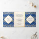 Royal Blue Gold Lace QR Code Photo Indian Wedding Tri-Fold Invitation