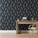 Royal Blue Gold leaves Botanical Pattern Wallpaper