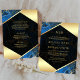 Royal Blue Gold Marble Monogram All in One Wedding Invitation