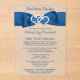 If you've found the love of your life and want to invite all your family and friends to witness the joining of your two hearts, then this royal blue on frosted acrylic wedding invitation with images of a pair of joined hearts on a 2D PRINTED ON blue ribbon and bow ribbon image running across the top of the invitation is sure to get everyone's attention. Above the hearts, a customizable line of text says, "Two Hearts, One Love". Your wedding ceremony, reception details, and RSVP info are printed below the ribbon image in royal blue. If you need any additional matching items, please email your request to niteowlstudio@gmail.com or use the Zazzle chat feature to get in touch.