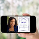 A white background, decorated with a royal blue hand-drawn bow and frame. Personalize and add a photo, name and party details.