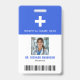 The front of the badge displays the medical facility name, logo, officer photo, officer name, designation and scannable bar code for verification details, hospital records, or internal systems. This improves security and workflow efficiency.