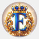 A lavish blue letter E monogram framed by intricate gold scrollwork and a regal crown, creating a bold, high-end emblem ideal for luxury branding, invitations, and classic design themes.