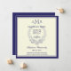 This formal square elegant graduation announcement features a royal blue border and monogram initials at the top. The ornate calligraphy style embellishment in the center and laurel watermark gives it a touch of class. Personalize these announcements with your graduation information. There is also plenty of room on the back for more information. This design works best with the square cardstock, for rectangle or rounded corners please see the following: