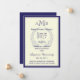 This formal elegant graduation announcement features a royal blue border and monogram initials at the top. The ornate calligraphy style embellishment in the center and laurel watermark gives it a touch of class. Personalize these announcements with your graduation information. There is also plenty of room on the back for more information.