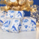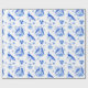 Royal blue peacock chinoiserie pattern gift wrap, blue and white.