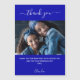 A royal blue background color. White, large hand lettered script with swashes and the text: Thank You. Personalize and add your photo, thank you note and name.
