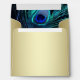 Elegant peacock blue peacock feathers interior and gold exterior invitation and announcement envelope.