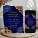 Royal Blue Roses Gold Lace QR Code Muslim Wedding Invitation