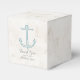 Perfect for a nautical themed wedding is this Rustic Anchor Wedding Favor Boxes with a dark blue boat anchor on a light beige marble look background. These classic and simple boxes are easy to customize with your wedding details. Find more personalization options by clicking Customize.