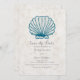 Perfect for a nautical themed wedding is this Rustic Seashell Wedding Save the Date Announcement with a dark blue seashell on a light beige marble look background. This classic and simple beach save the date invite is easy to customize with your wedding details. Find more personalization options by clicking Customize.