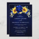Royal Blue Rustic Sunflower Modern Floral Wedding Invitation