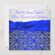 Royal Blue Silver Damask Silver 25th Anniversary Invitation