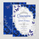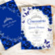 Royal Blue Silver Floral Quinceanera Invitation